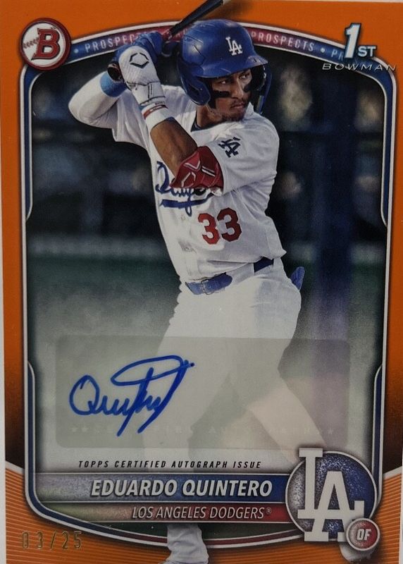 2025 Bowman Eduardo Quintero 1st Autograph Orange Los Angeles Dodgers # /25