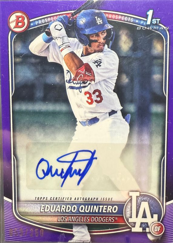 2025 Bowman Baseball 1st Eduardo Quintero Purple Prospect Auto /250 Dodgers
