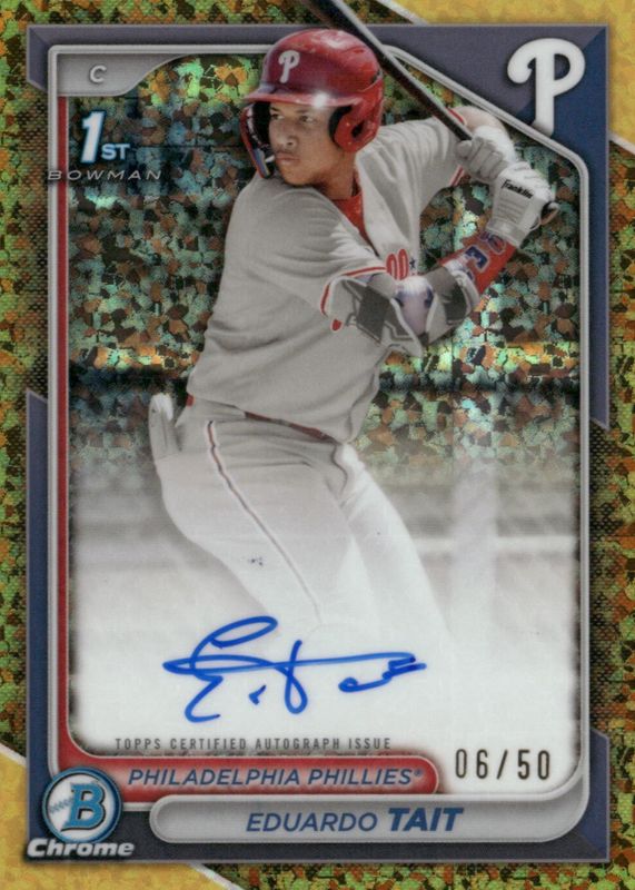 2024 Bowman Chrome Eduardo Tait 1st Gold Mini Diamond Auto #’d/50 Phillies RC! •