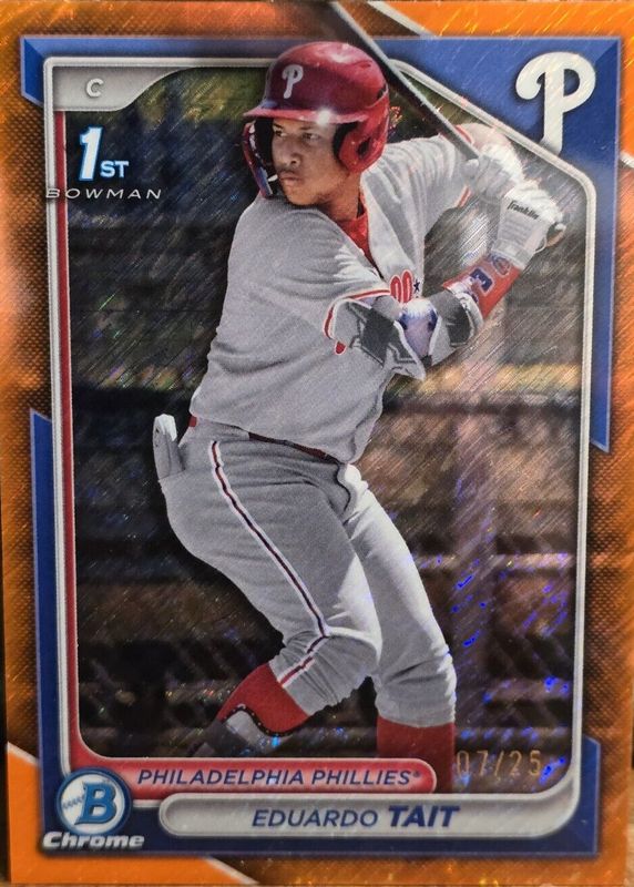 2024 Bowman Chrome 1st Eduardo Tait Orange Shimmer Refractor 1/25 Phillies