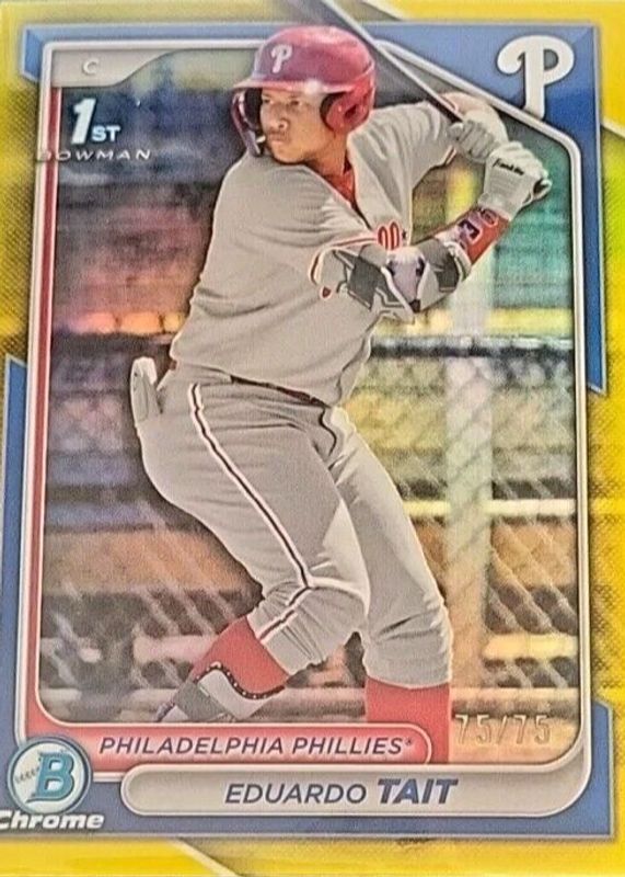 2024 Bowman Chrome Eduardo Tait Yellow Refractor 1st Prospect #5/75 Phillies