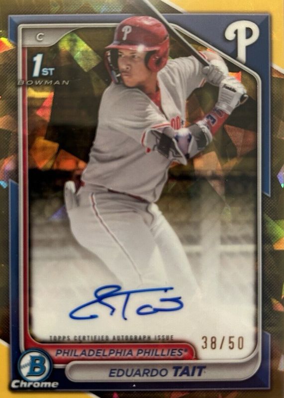 EDUARDO TAIT 2024 Bowman Chrome Gold Sapphire Refractor Auto CSPA-ET /50 (RC, AU