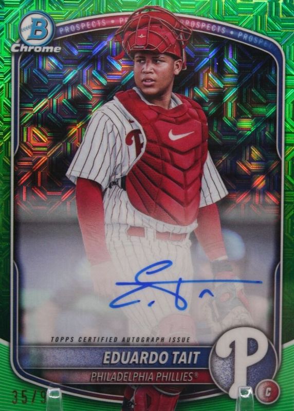 2025 BOWMAN CHROME EDUARDO TAIT AUTO Green MOJO REFRACTOR /99 Phillies SP