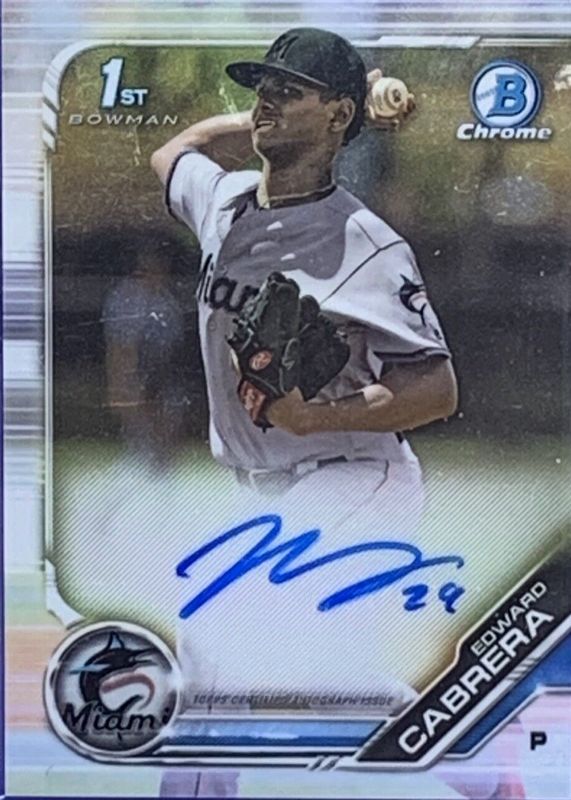Edward Cabrera 2019 1st Bowman Chrome Auto Miami Marlins Chicago Cubs RC Rookie