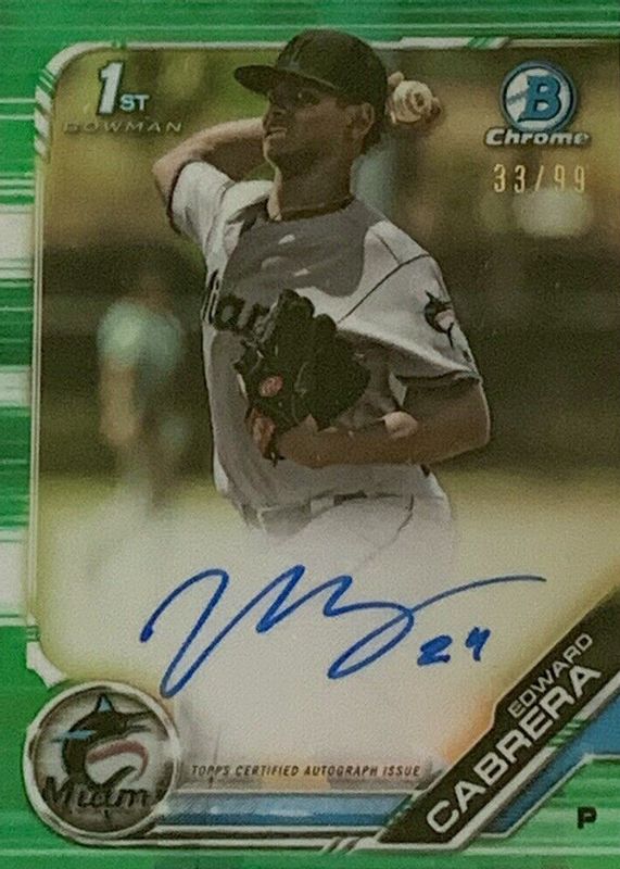 2019 Edward Cabrera Bowman Chrome 1st Green Refractor Auto RC 40/99 Marlins