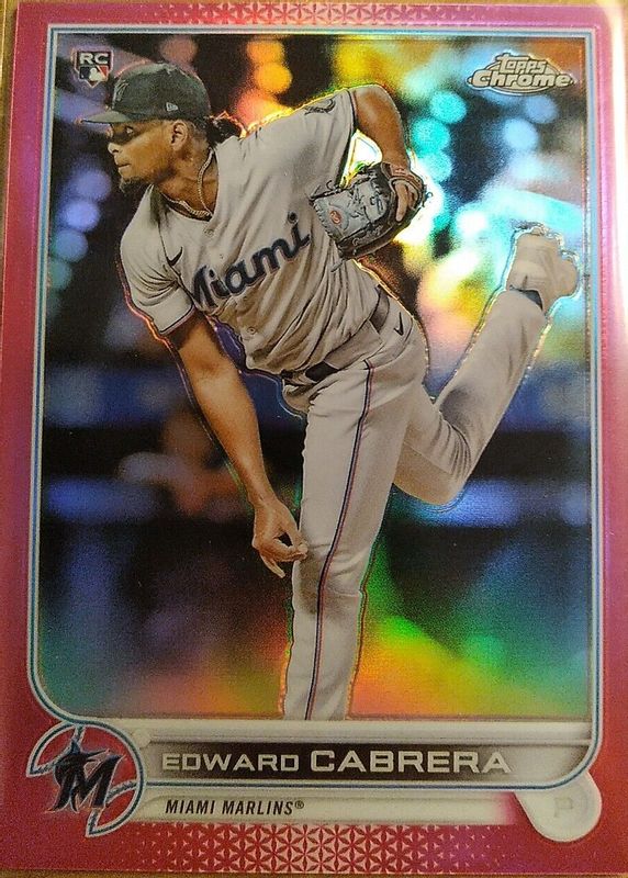 This card is 1 of 41 Edward Cabrera's card variations in the 2022 Topps Chrome set being tracked by Sports Card Investor, including Base, Black & White Mini-Diamond Refractor, Negative Refractor, Pink Refractor, and Prism Refractor.