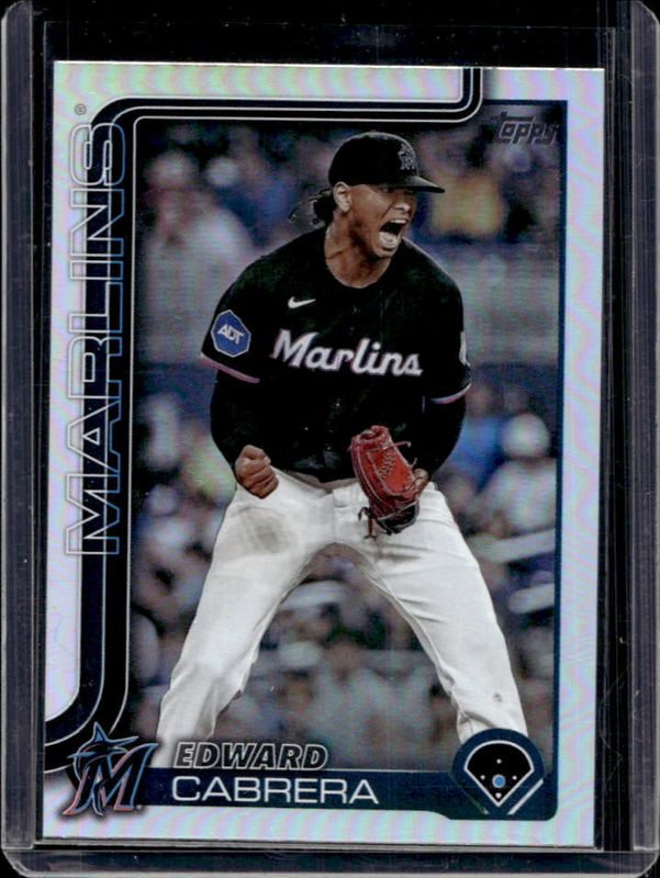 The Edward Cabrera 2025 Topps #371 Rainbow Foil card is 1 of 55 Edward Cabrera's card variations in the 2025 Topps set being tracked by Sports Card Investor, including Base, Aqua Holo Foil, Diamante Foil, Holo Foil, and Pink Diamante Foil.