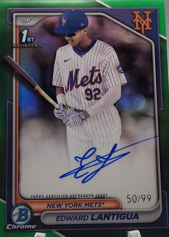 2024 Bowman Chrome 1st Edward Lantigua Auto Green Refractor 1st # 56/99 Mets