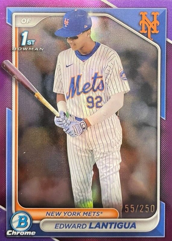 2024 BOWMAN CHROME EDWARD LANTIGUA 1ST ROOKIE PURPLE REFRACTOR SP #/250 METS