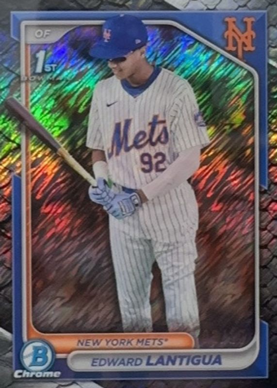 This card is 1 of 51 Edward Lantigua's card variations in the 2024 Bowman Chrome set being tracked by Sports Card Investor, including Prospects (1st), Prospects - Shimmer Refractor (1st), Prospects - Refractor /499 (1st), Prospects - Speckle Refractor /299 (1st), and Prospects - Purple Refractor /250 (1st).