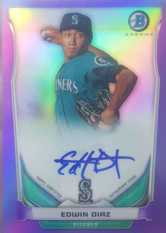 Edwin Diaz 2014 Bowman #BCAP-ED Chrome Prospect Auto - Purple Refractor /10 RAW Price Guide