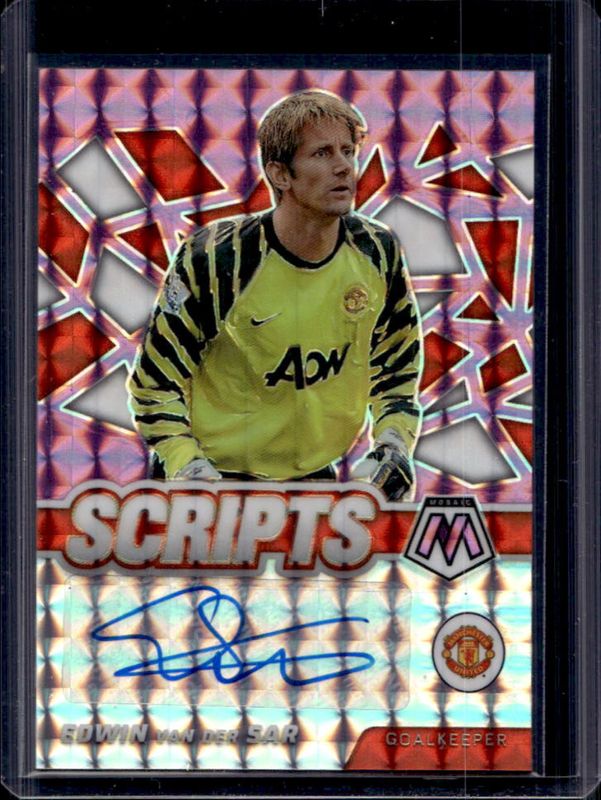 Edwin Van Der Sar 2021 Mosaic Premier League #SM-VDS Scripts - Pink Fluorescent /5 RAW Price Guide