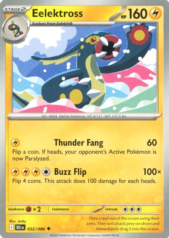 Eelektross 2025 Scarlet & Violet: Black Bolt #032/086 Base RAW TCG (LIGHTLY PLAYED) Price Guide