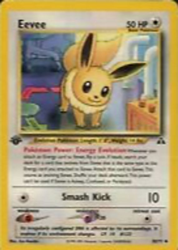 The Eevee 2001 Neo Discovery #38/75 1st Edition card in Raw TCG (Near Mint) condition has moved down -$3.05 (-13.3%) in the last 30 days and was last sold for $19.95 .