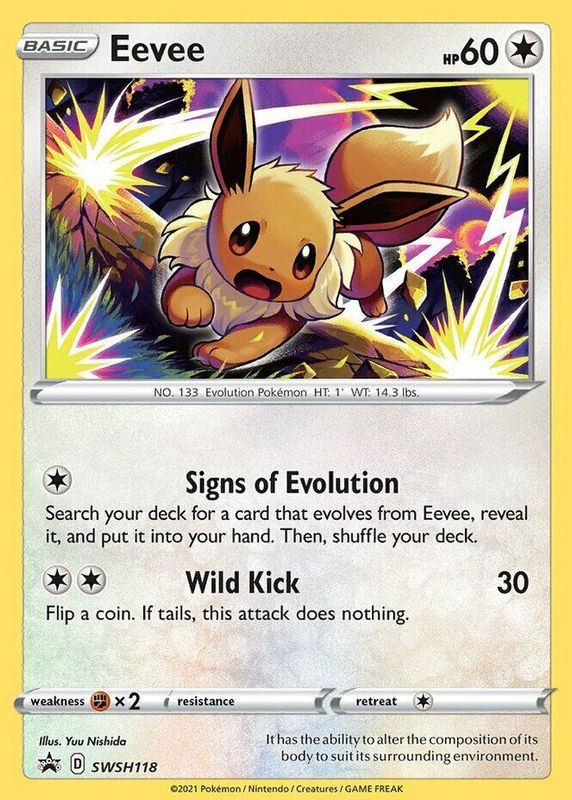 This card is 1 of 3 Eevee's card variations in the 2021 Sword & Shield: Black Star Promo set being tracked by Sports Card Investor, including Single Pack Blisters (Evolving Skies), and Three Pack Blisters (Battle Styles).