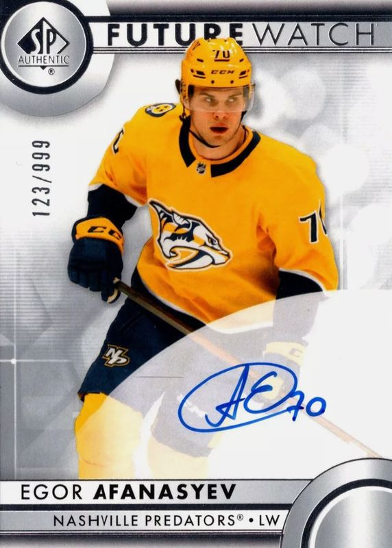 2023-24 UD SP Authentic Future Watch Auto Egor Afanasyev /999 Nashville Predator