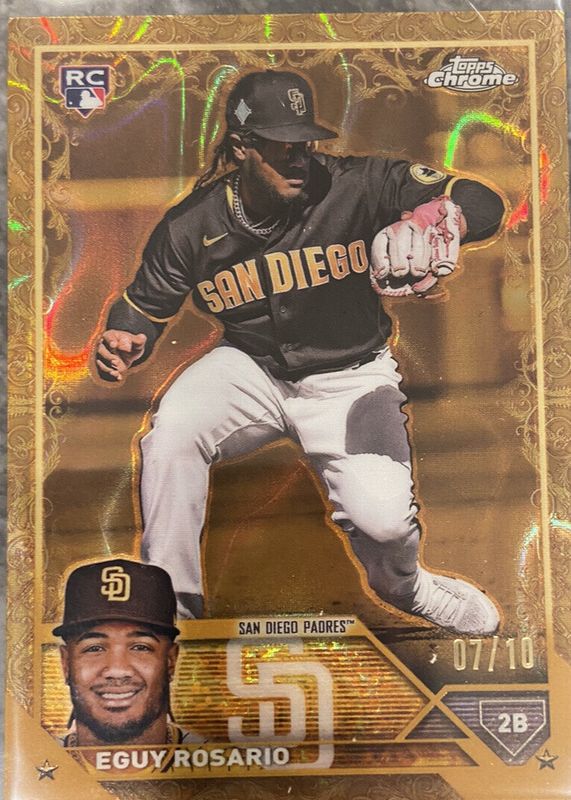 This card is 1 of 12 Eguy Rosario's card variations in the 2023 Topps Gilded Collection set being tracked by Sports Card Investor, including Base /99, Wave Gold Etch Refractor /75, Mini-Diamond Gold Etch Refractor /50, RayWave Gold Etch Refractor /25, and Superfractor /1.