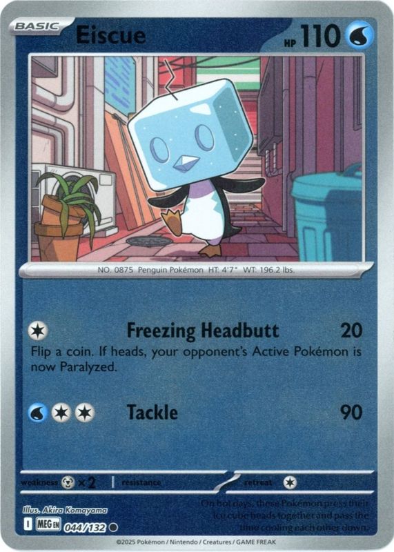 The Eiscue 2025 Mega Evolution #044/132 Reverse Holo card in Raw TCG (Lightly Played) condition has not changed in price in the last 30 days and was last sold for $2.99 .