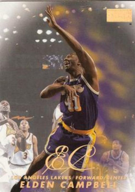 The Elden Campbell 1998 Skybox Premium #39 Base card is 1 of 4 Elden Campbell's card variations in the 1998 Skybox Premium set being tracked by Sports Card Investor, including Star Rubies /50, Autographics, and Autographics Blue /50.
