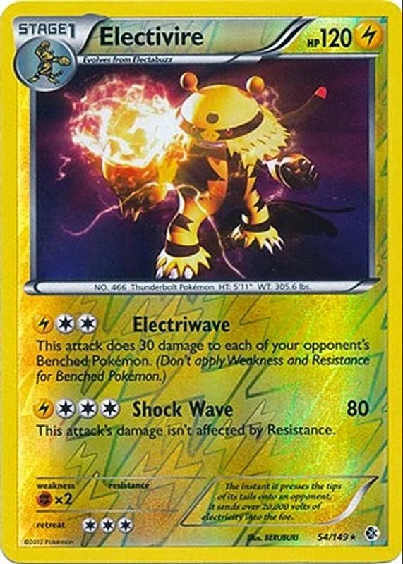 Electivire 2012 Black & White: Boundaries Crossed #054/149 Reverse Holo RAW TCG (LIGHTLY PLAYED) Price Guide