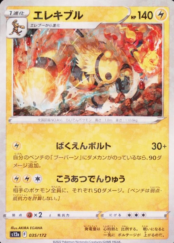 Electivire 2022 Japanese Sword & Shield: VSTAR Universe #035/172 Reverse Holo SGC 9 Price Guide