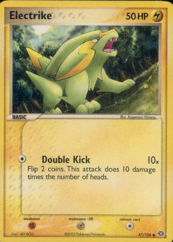 This card is 1 of 4 Electrike's card variations in the 2005 EX: Emerald set being tracked by Sports Card Investor, including #048/106 Base, #047/106 Reverse Holo, and #048/106 Reverse Holo.