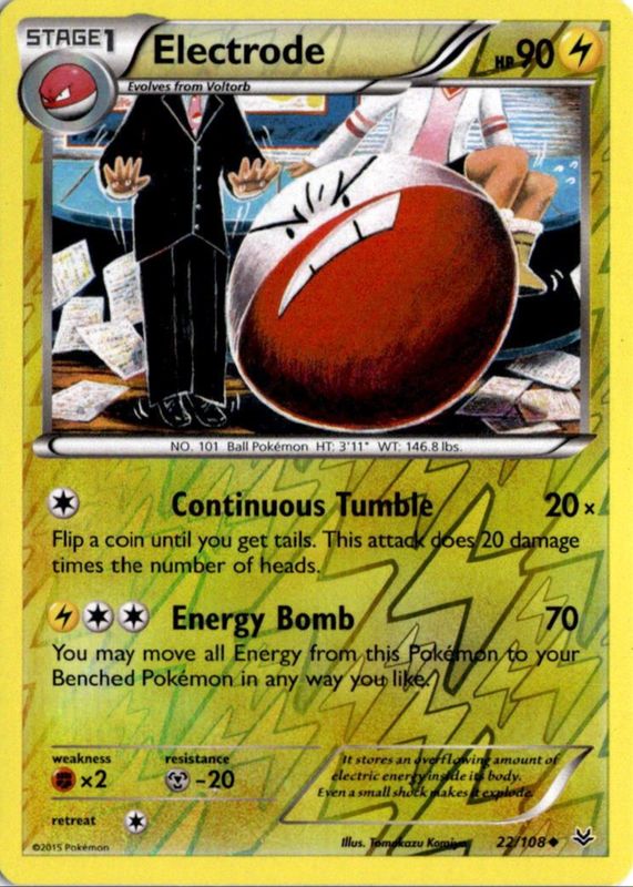 The Electrode 2015 XY: Roaring Skies #022/108 Reverse Holo card in Raw TCG (Near Mint) condition has not changed in price in the last 30 days and was last sold for $4.21 .