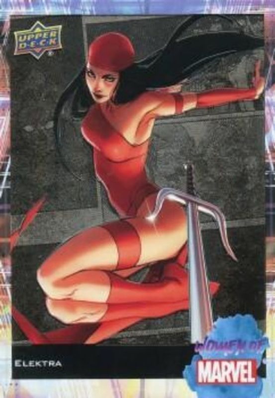 The Elektra 2024 Upper Deck Women of Marvel #37 Base card is 1 of 12 Elektra's card variations in the 2024 Upper Deck Women of Marvel set being tracked by Sports Card Investor, including Foil Lt Fx Blue, Foil Lt Fx Copper, Foil Lt Fx Red, Foil Lt Fx Green /99, and Foil Lt Fx Gold /33.