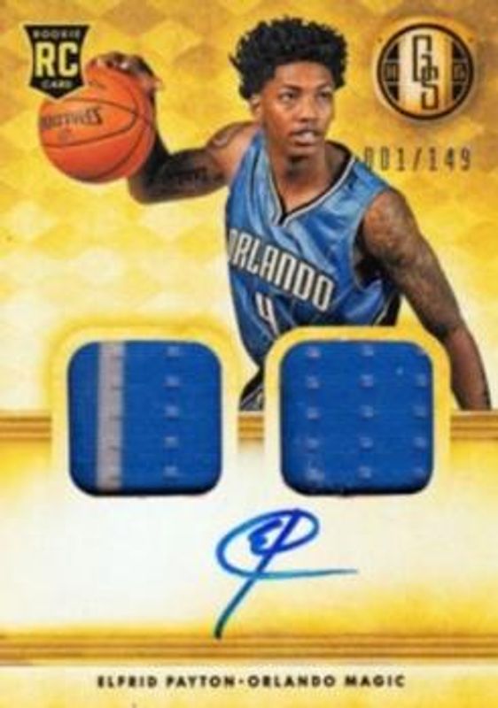 The Elfrid Payton 2014 Gold Standard #244 Base /149 Rookie card is 1 of 16 Elfrid Payton's card variations in the 2014 Gold Standard set being tracked by Sports Card Investor, including #211 Base /149, #277 Base /149, #29 Gold Strike Jersey Autographs /199, #23 Golden Debuts /50, and #29 Gold Strike Jersey Autographs - Prime /25.
