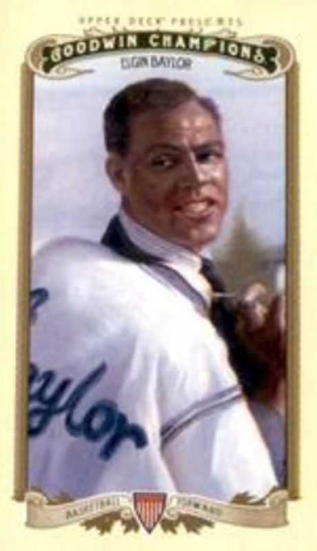 The Elgin Baylor 2012 Upper Deck Goodwin Champions #23 Mini card is 1 of 12 Elgin Baylor's card variations in the 2012 Upper Deck Goodwin Champions set being tracked by Sports Card Investor, including Base, Mini Foil, Mini Green, Mini Green Blank Backs, and Mini Foil Magician Red /12.
