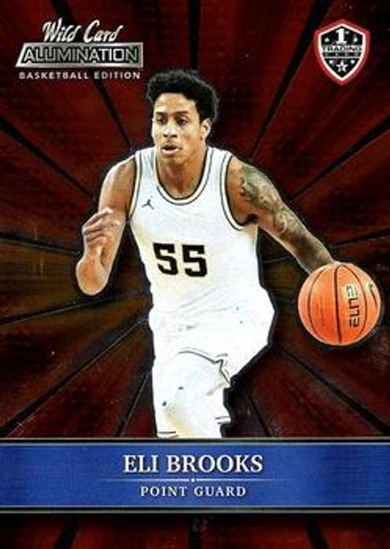The Eli Brooks 2021 Wild Card Alumination #ABC-24 Red Chase card is 1 of 71 Eli Brooks' card variations in the 2021 Wild Card Alumination set being tracked by Sports Card Investor, including Base, 100 Stripe, 10 Stripe, 20 Stripe, and 50 Stripe.