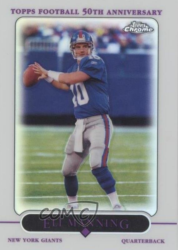 This card is 1 of 3 Eli Manning's card variations in the 2005 Topps Chrome set being tracked by Sports Card Investor, including Gold X-Fractor /399, and Black Refractor /100.