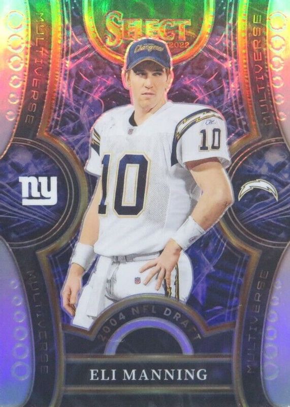This card is 1 of 3 Eli Manning's card variations in the 2022 Select set being tracked by Sports Card Investor, including Multiverse - Gold /10, and Multiverse - Black /1.