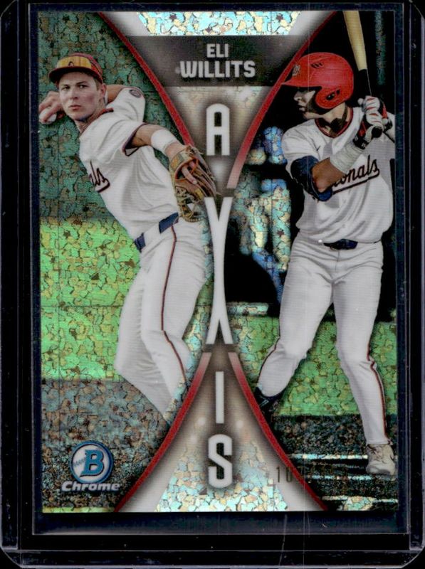 The Eli Willits 2025 Bowman Draft #A-1 Axis - Mini-Diamond Refractor /150 card is 1 of 165 Eli Willits' card variations in the 2025 Bowman Draft set being tracked by Sports Card Investor, including Base (1st), Base, Chrome (1st), Chrome Image Variation, and Chrome - Lazer Refractor (1st).