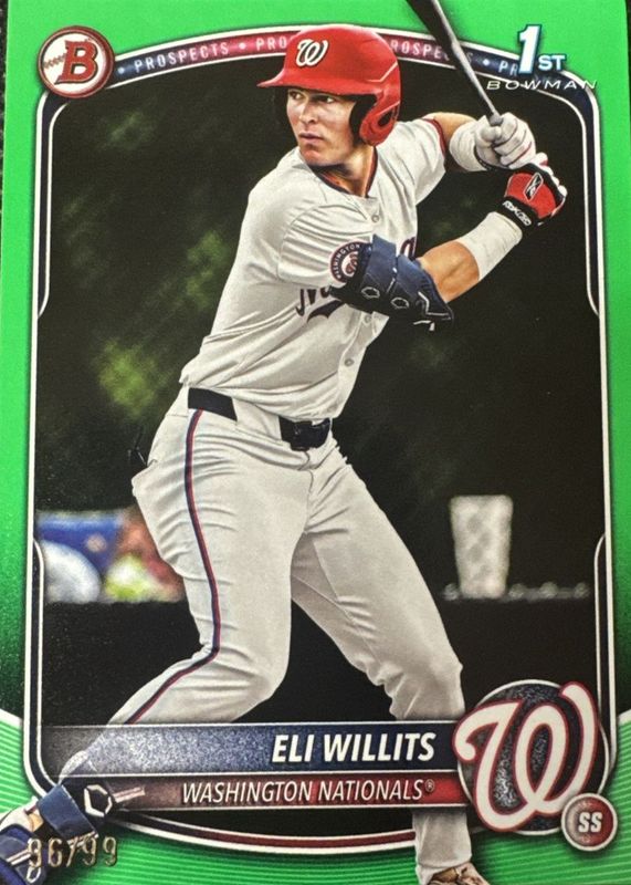 Best Prices Available For Sale of Eli Willits 2025 Bowman Draft #BD-96 Green Border /99 (1st)
