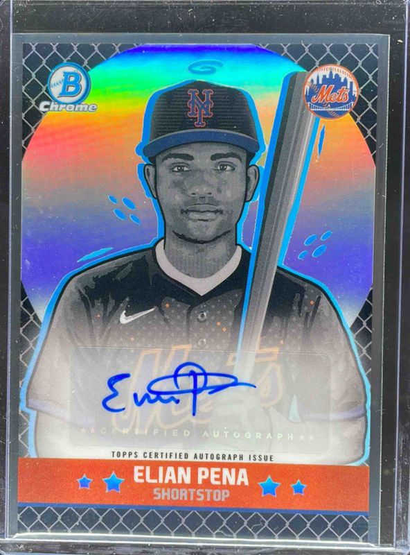The Elian Pena 2025 Bowman Chrome #BAA-EP Acension Autographs card is 1 of 100 Elian Pena's card variations in the 2025 Bowman Chrome set being tracked by Sports Card Investor, including Ascensions, Base Image Variation, International Refractor Variation, Prospect Auto (1st), and Prospect Auto - Black & White Shimmer Refractor (1st).