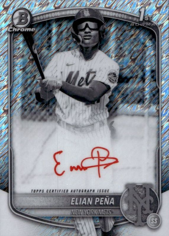 Elian Pena 2025 Bowman Chrome #CPA-EP Prospect Auto - Black & White Shimmer Refractor (1st) RAW Price Guide
