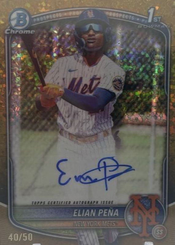 2025 Bowman Chrome Elian Pena 1st Auto Gold Mini-Diamond /50 Mets GRADEABLE