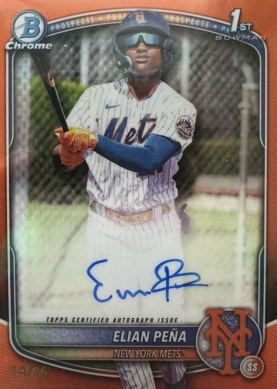 Auctions Ending Soon for Elian Pena 2025 Bowman Chrome #CPA-EP Prospect Auto - Orange Refractor /25 (1st) RAW