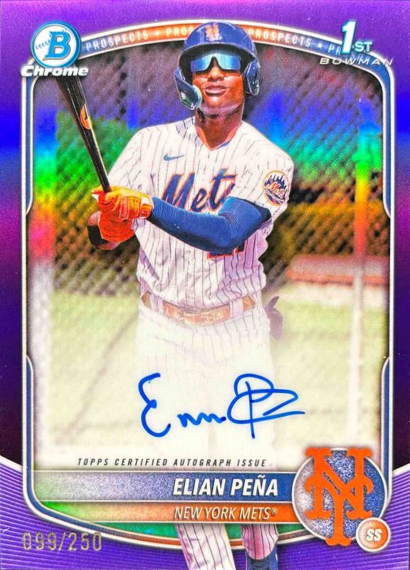 2025 Bowman Chrome ELIAN PENA 1st True Purple Refractor Auto # /250 🔥 Mets