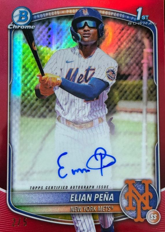 Elian Pena 2025 Bowman Chrome #CPA-EP Prospect Auto - Red Refractor /5 (1st) RAW Price Guide