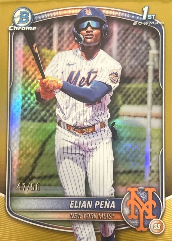2025 BOWMAN CHROME - ELIAN PENA - 1ST GOLD REFRACTOR PROSPECTS - METS #/50