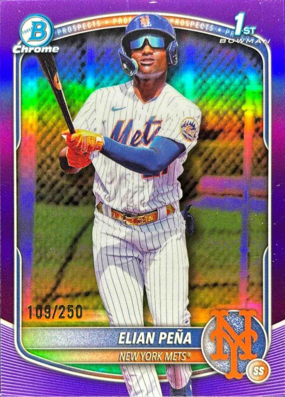 2025 Bowman Chrome 1st Elian Pena Orange Refractor Color Match /25 Mets