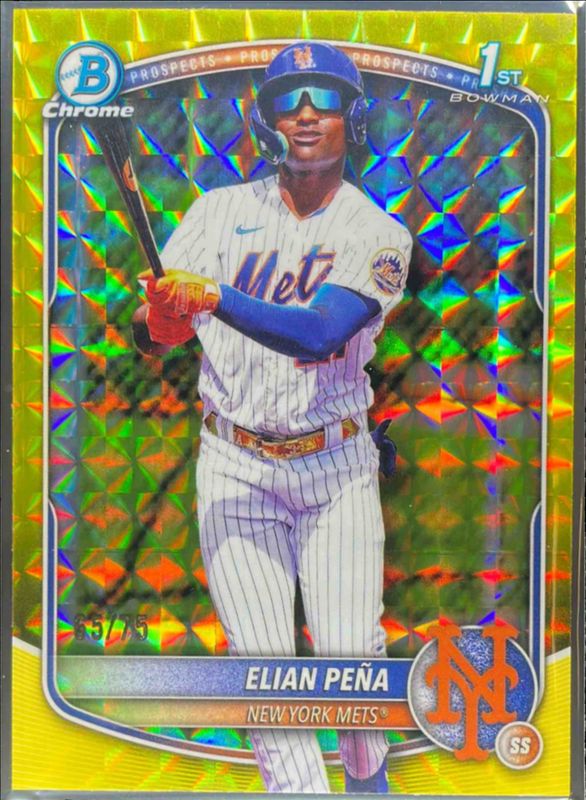 Elian Pena 2025 Bowman Chrome #BCP-155 Prospects - Popcorn Refractor /(SSP) (1st) RAW Price Guide