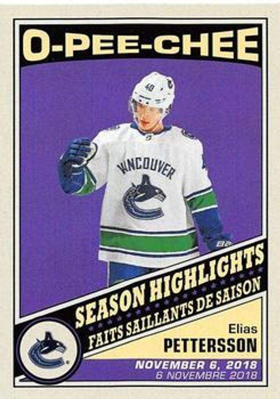 Elias Pettersson 2019 O-Pee-Chee #594 Retro Blank Back RAW Price Guide