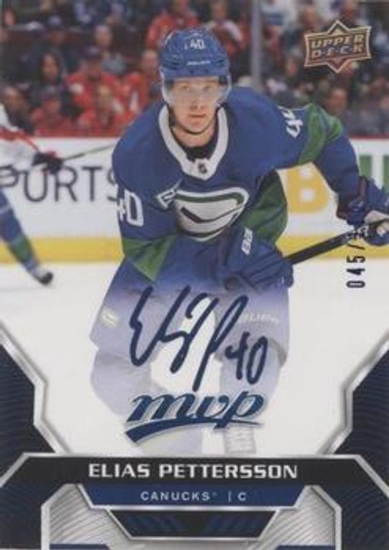 Elias Pettersson 2020 Upper Deck MVP #211 Puzzle Backs Blue Script Achievement /100 RAW Price Guide