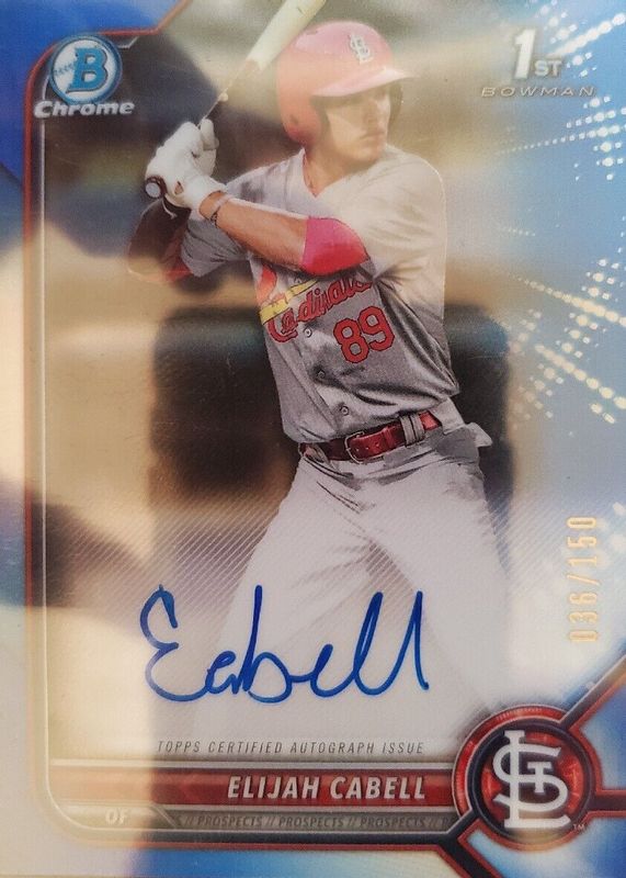 2022 Bowman Chrome Elijah Cabell 1st Auto St Louis Cardinals Blue Refractor /150