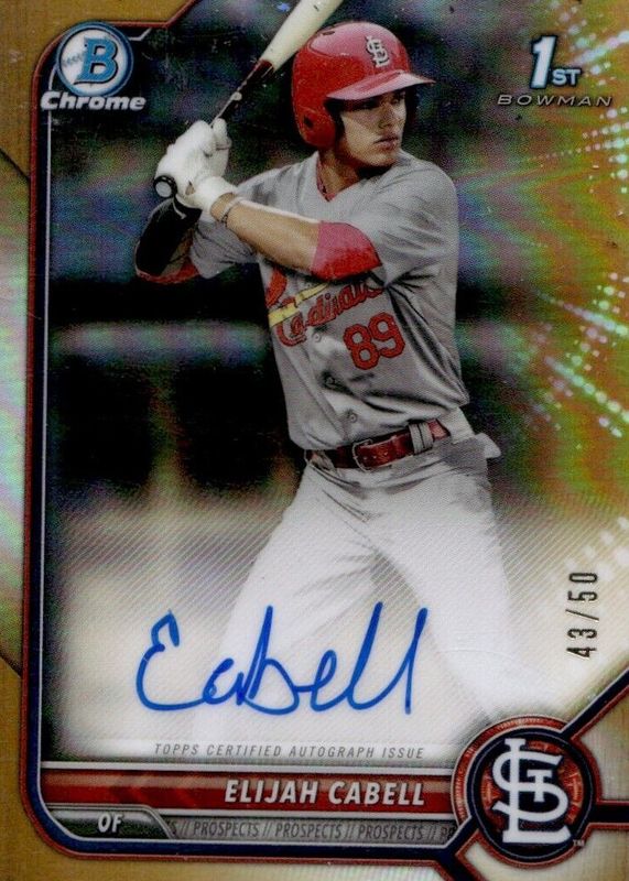 2022 Bowman Chrome 1st Elijah Cabell Gold Refractor Auto /50 Cardinals