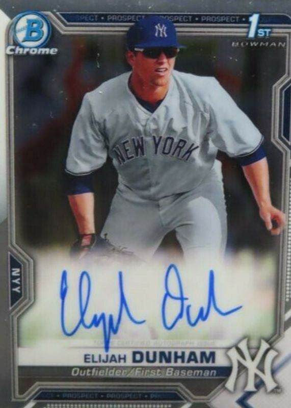 The Elijah Dunham 2021 Bowman Chrome #CPA-ED Prospect Auto (1st) card in Raw condition has moved down -$0.49 (-24.9%) in the last 30 days and was last sold for $1.50 .