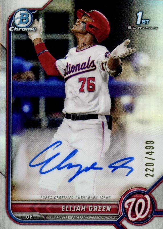 2022 Bowman Elijah Green 1st Chrome Refractor AUTO 073/499 Washington Nationals